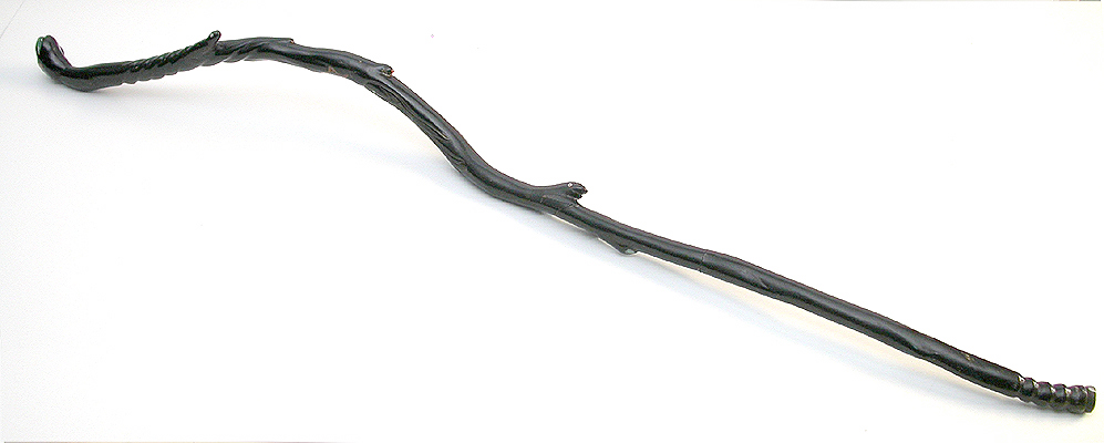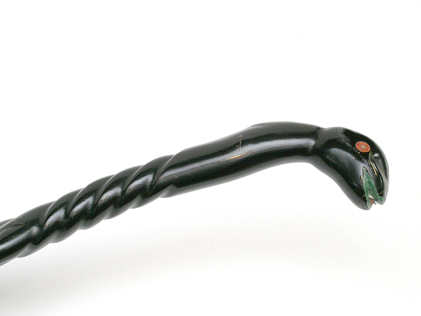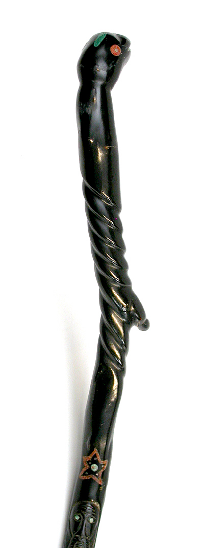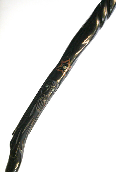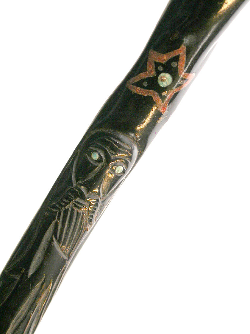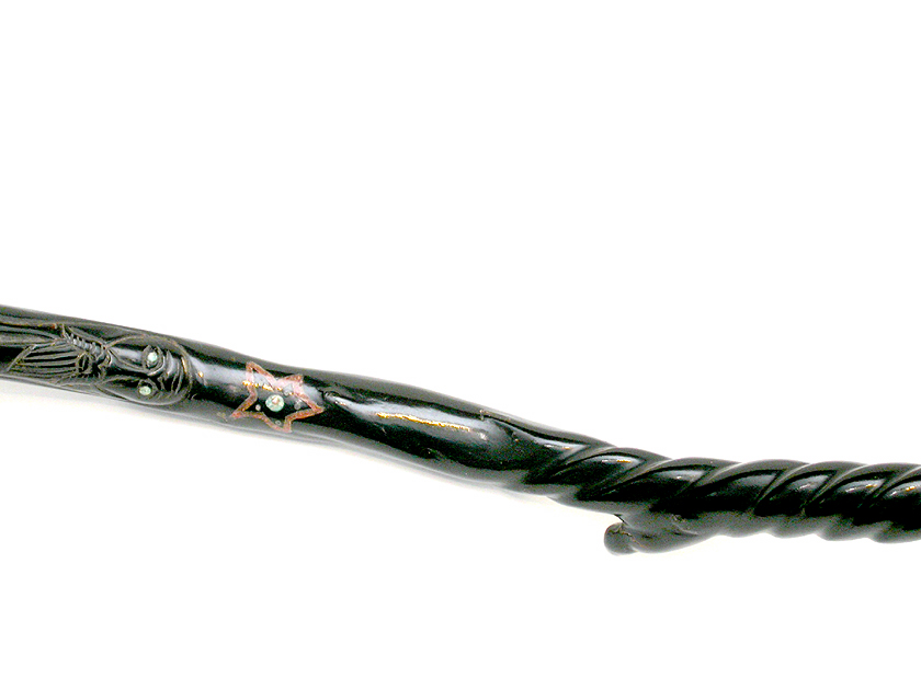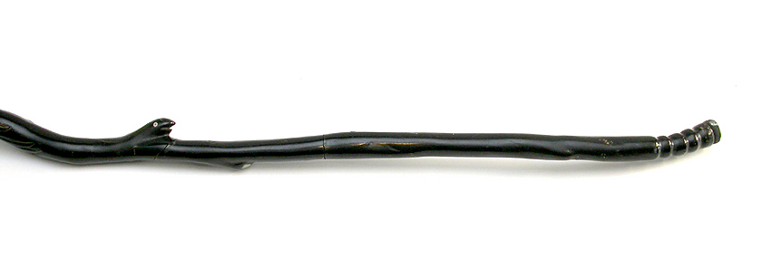 Though designed and crafted to be used as intended as a walking stick, it is truly a work of art. It was made as a custom order, by a fisherman and sculptor in Jamaica, the design was his. Black coral has been unable to be taken out of Jamaica for many years now. It was legal to do so at the time.