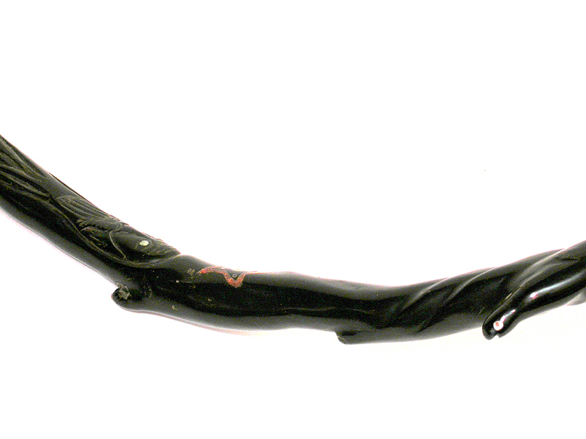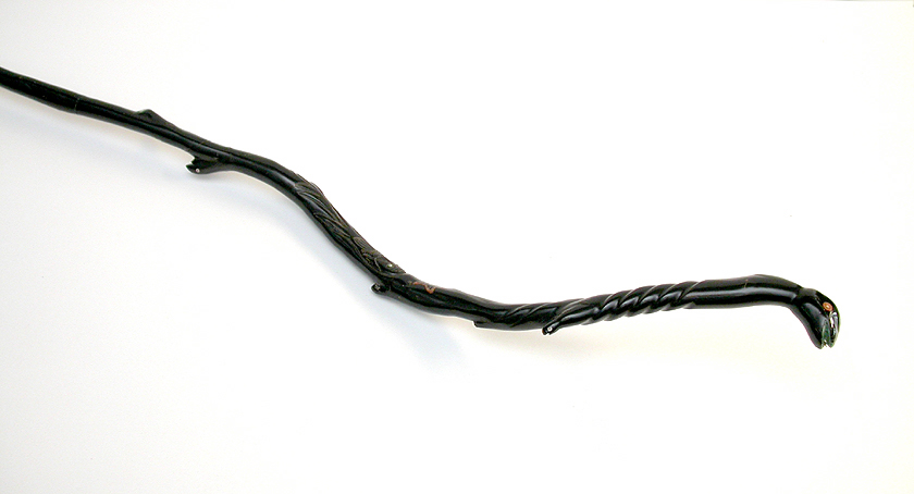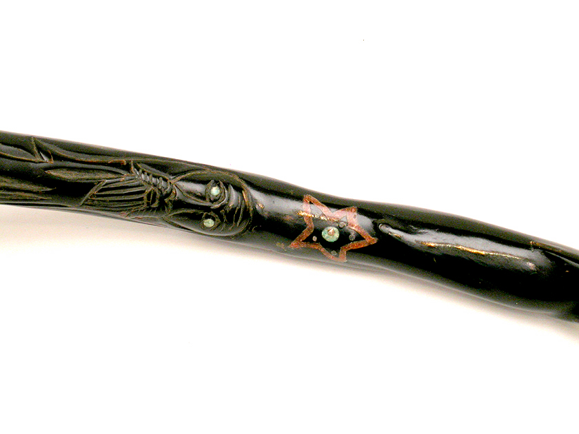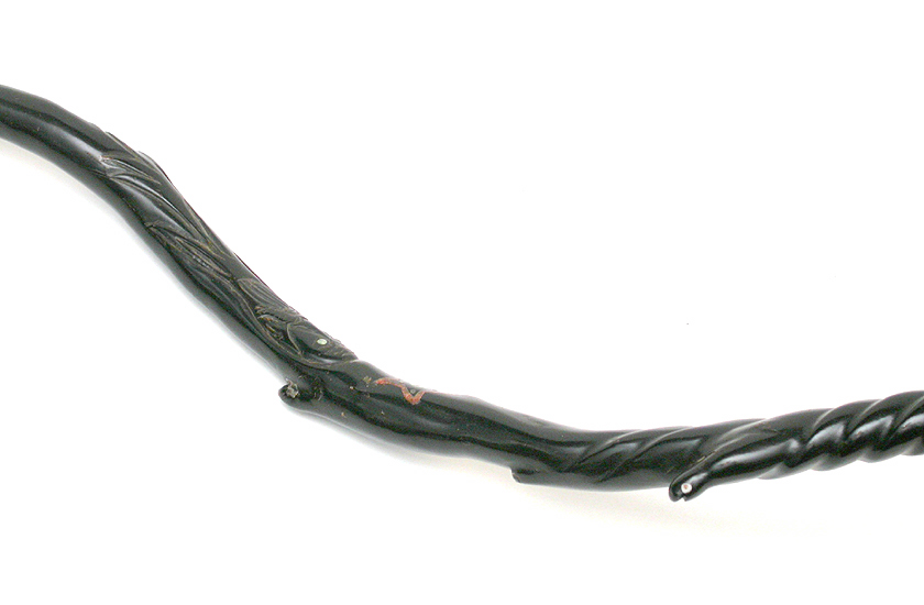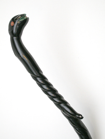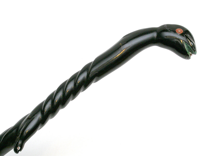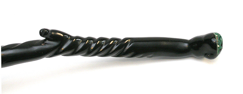 Though designed and crafted to be used as intended as a walking stick, it is truly a work of art. It was made as a custom order, by a fisherman and sculptor in Jamaica, the design was his. Black coral has been unable to be taken out of Jamaica for many years now. It was legal to do so at the time.
